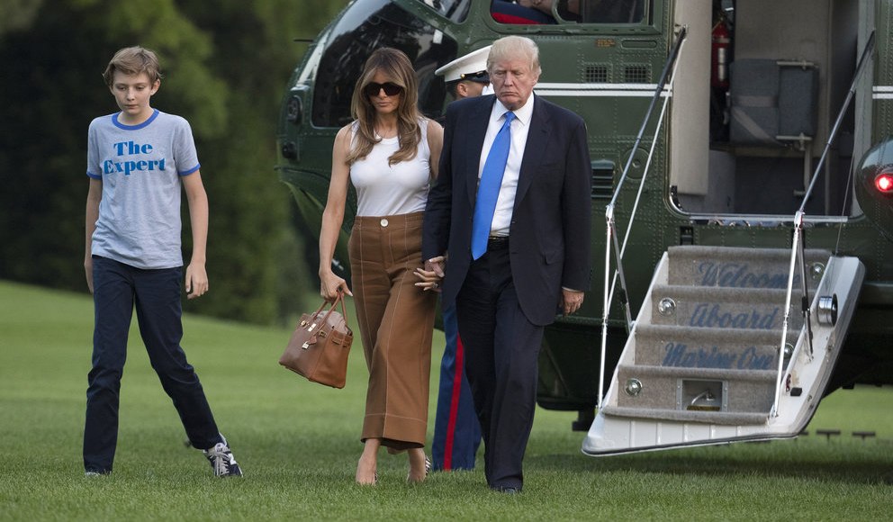 Both Barron and Melania Trump joined the president on his return flight on Sunday from New Jersey